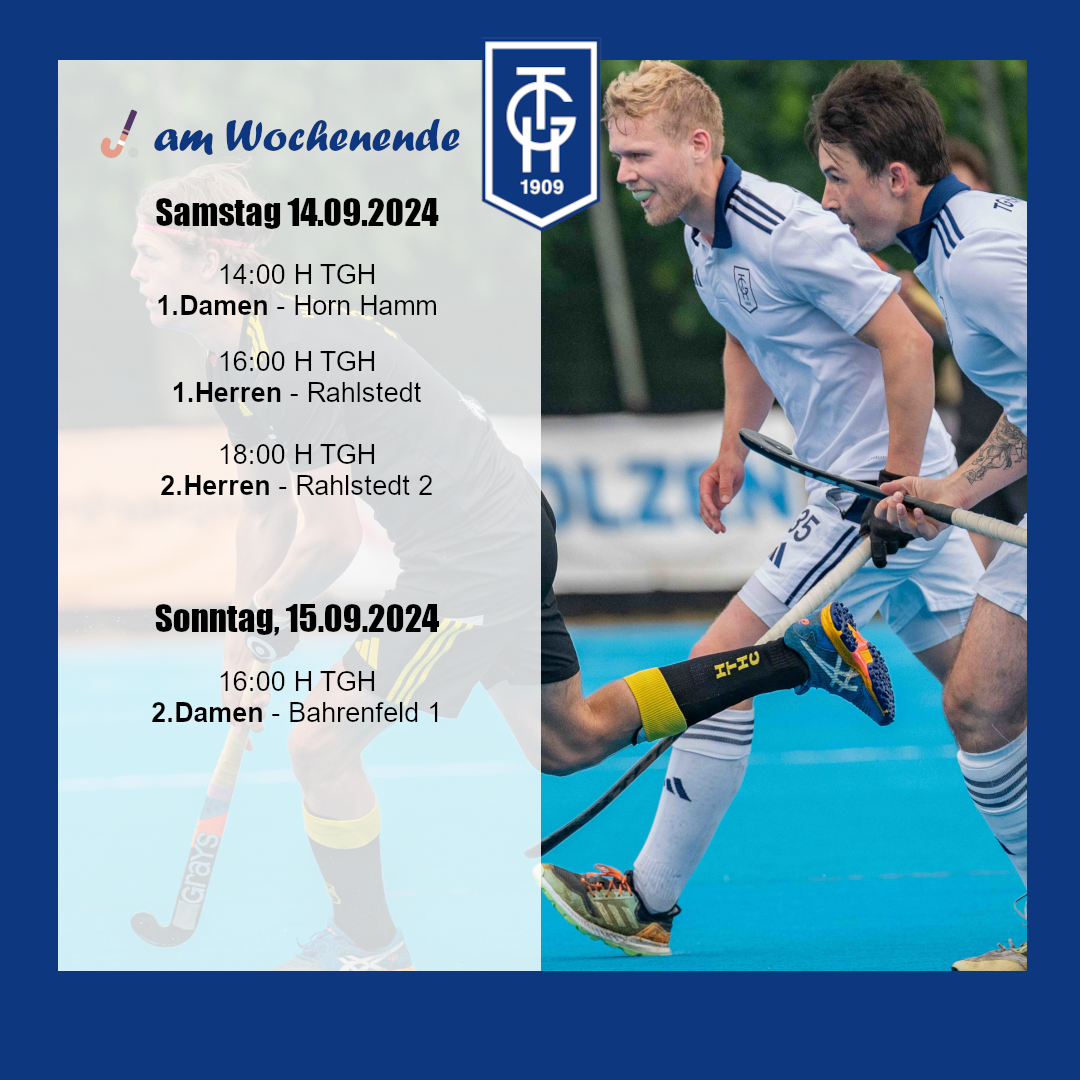 Und weiter geht die Jagd nach Punkten, diesmal mit jeder Menge Heimspielen! Den Anfang machen am Samstag unsere @tgheimfeld_damen, die nach einer tollen Vorbereitung nun in die 2.Bundesliga-Saison der @hockey_bundesliga starten! Unsere @1.herrentgh und @2.herrentgh spielen im Anschluss und wollen, nach unglücklichen Auftaktniederlagen, nun endlich die ersten Punkte auf ihre Konten holen! Das Heim-Wochenende beenden am Sonntag unsere @tgh2.0 um 16:00 zuhause!