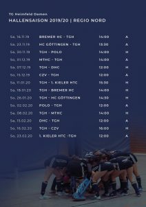 Nur noch ein paar Wochen Vorbereitung, dann starten unsere 1.Damen TG Heimfeld und 1. Herren TG Heimfeld in die Hallensaison!👍💪🔥 Hier die Übersicht ihrer Punktspiele: